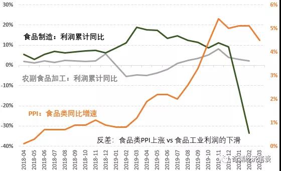 其中,农副食品加工业2月利润累计同比增速为2.2%,不但较2019年11月的8.3%显著回落,同时也明显低于同期的食品类PPI增速。而食品制造业2月利润累计同比增速为-33.5%,甚至较去年末10%左右的水平大幅下挫。