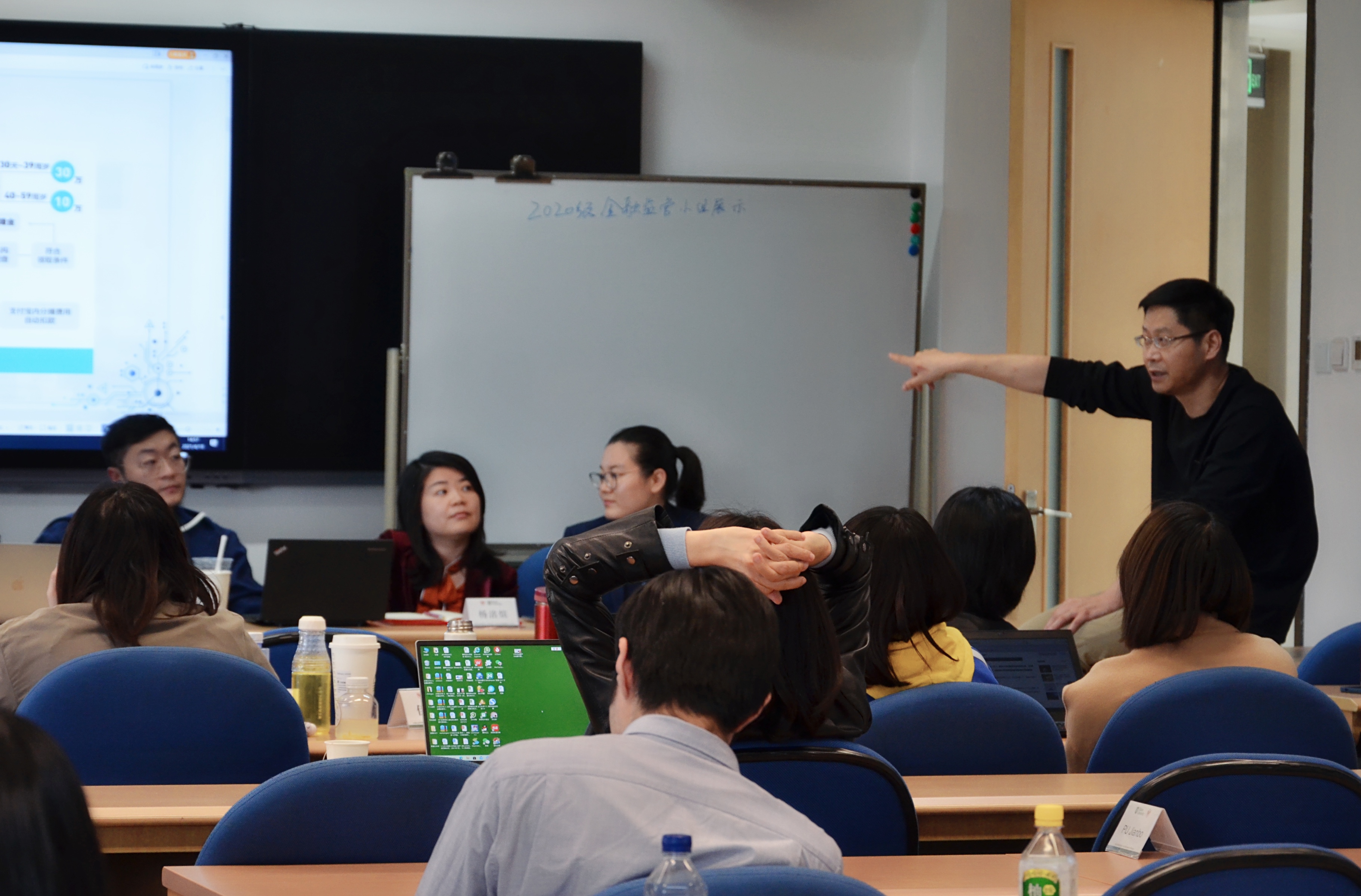 在胡老师的指导下,20级北京班的同学分别以“中行原油宝”、“中小银行流动性危机”、“大科技金融平台的监管问题”、“康美药业财务造假”、“相互宝事件”、“央行数字货币”等为主题,进行了自主研究与分析,并进行了最终的课堂展示与讨论。同学们的精彩展示,唇枪舌剑般的讨论提问环节,以及胡老师的犀利点评,都让现场掌声连连。师生之间的互动,一直持续到课程结束许久仍然热烈无比。