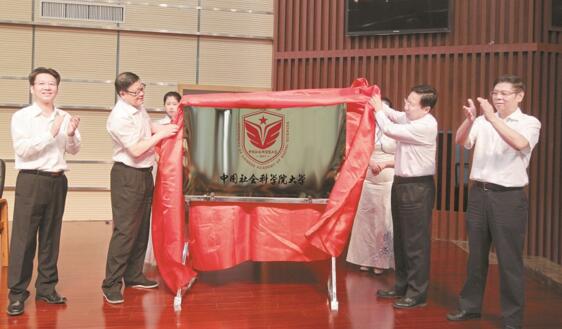 成立大会上,王伟光和王晓晖共同为大学揭牌,贺军科和张江陪同揭牌。张江为大学授校旗,中国社会科学院大学副校长王新清,中国社会科学院大学党委副书记王兵接校旗。