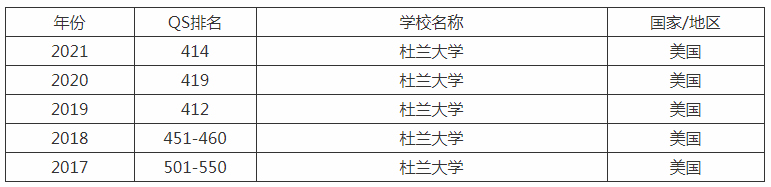 2021-2017杜兰大学世界排名