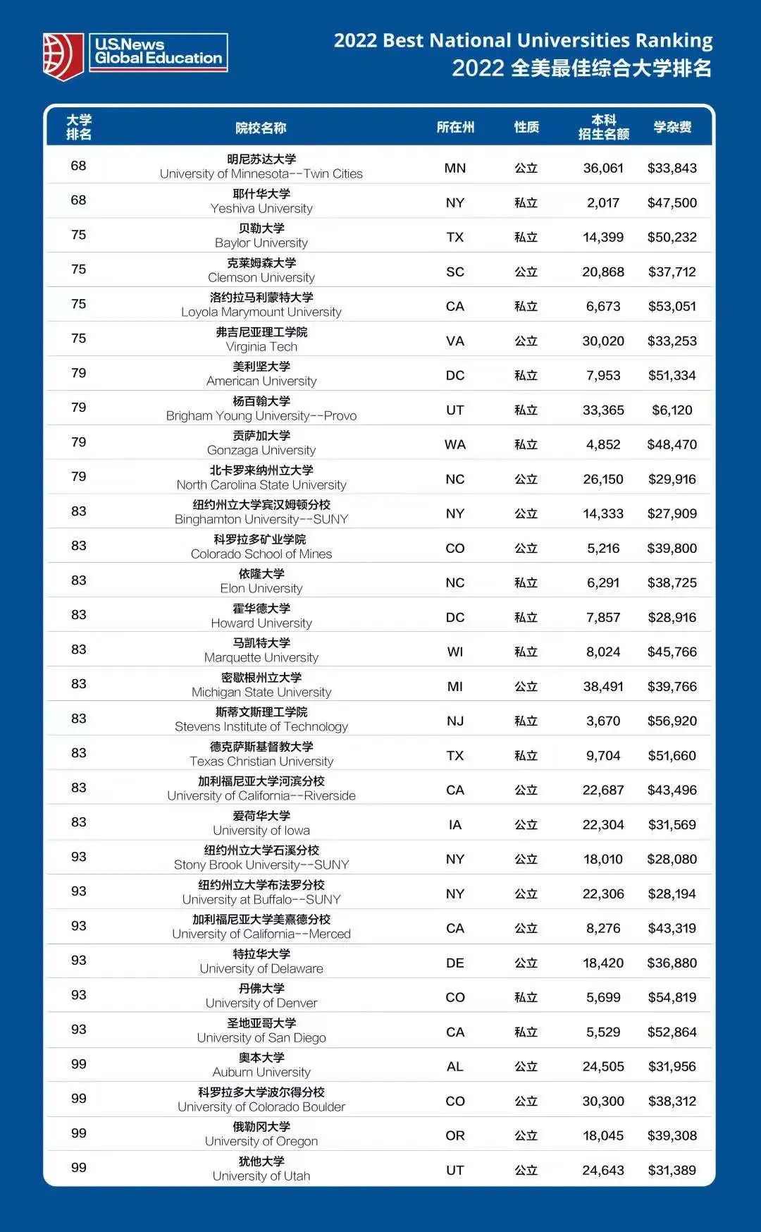 US News大学排名有三种,分为美国大学本科排名、美国大学研究生院排名和世界大学排名;本科称为Best Colleges,研究生院(包括硕士及博士)称为Best Graduate Schools,世界大学排名称为Best Global Universities。