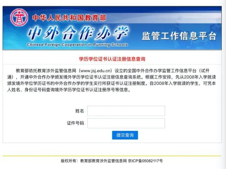 查询方式:打开教育部涉外监管网,点击「中外合作办学颁发境外学历学位注册认证信息查询」,输入姓名和证件号码即可查询,能查询到的才是教育部承认的、官网可查的正规学历教育项目。