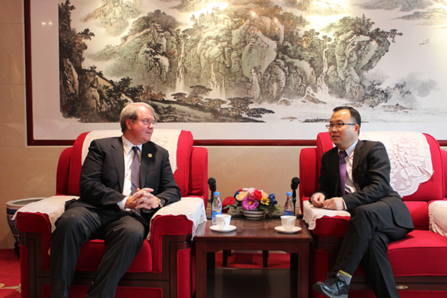 会见中,林维副校长介绍了我校的成立背景和办学特色,回顾了过去和蒙大拿大学在暑期项目、教师访问交流、文化演出交流等各个方面开展过的合作与交流,希望未来中国社会学院大学和蒙大拿大学也能延续之前的合作关系,并在教师学生互换、合作开展中美暑期班等方面深入探讨、设计更多形式多样的项目,在合作中使两校师生从中获益,并在合作中扩大双方的影响力。