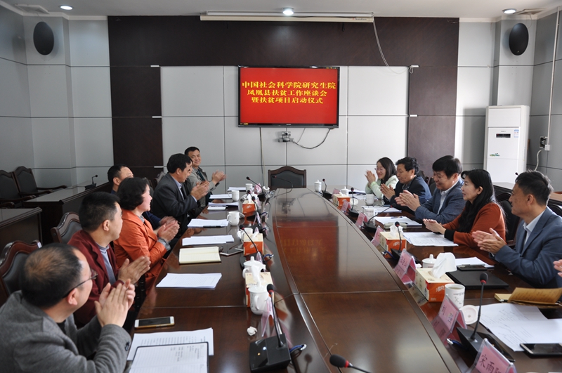 2018年3月27日上午9点,中国社会科学院研究生院(以下简称"我院")定点帮扶湖南省凤凰县脱贫工作启动仪式在凤凰县委第六会议室举行。黄晓勇同志、赵一红同志、中国社会科学院农村发展研究所组织与制度研究室主任崔红志研究员、中国社会科学院旅游研究中心张金山研究员等一行与凤凰县委常委、县委统战部部长周健智,凤凰县政协副主席、工商联主席李曼蓉以及凤凰县扶贫办、民政局、农业局、教体局、旅文局等相关职能部门领导出席项目启动仪式。
