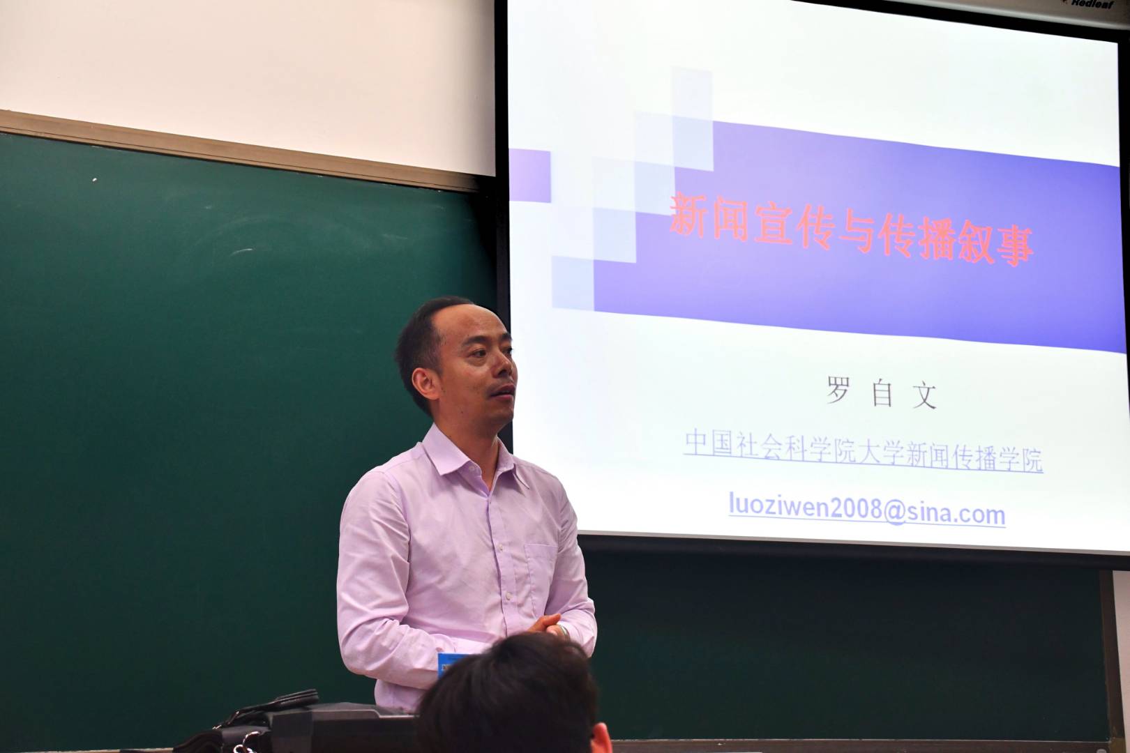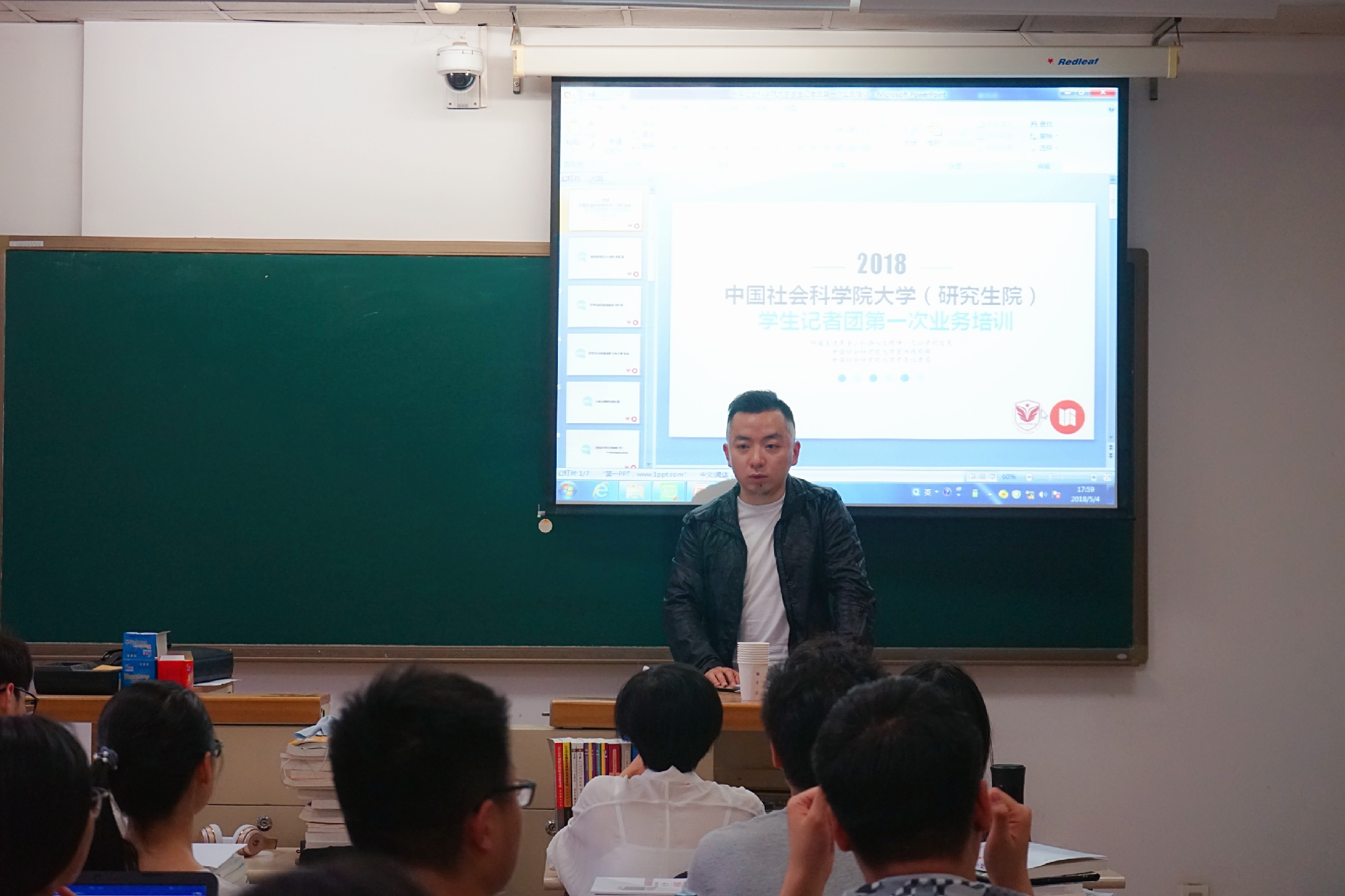 5月4日晚,中国社科院大学(研究生院)学生记者团2018年首次全团大会暨业务培训在良乡校区教学楼109教室举行。本次活动旨在于招新后对新老成员开展理想信念和团务教育,并进行新闻业务培训。校新闻传播学院执行院长罗自文教授,校宣传统战部负责人、中国社科院研究生院院长助理翁建敏老师出席会议,宣传统战部石力老师主持。