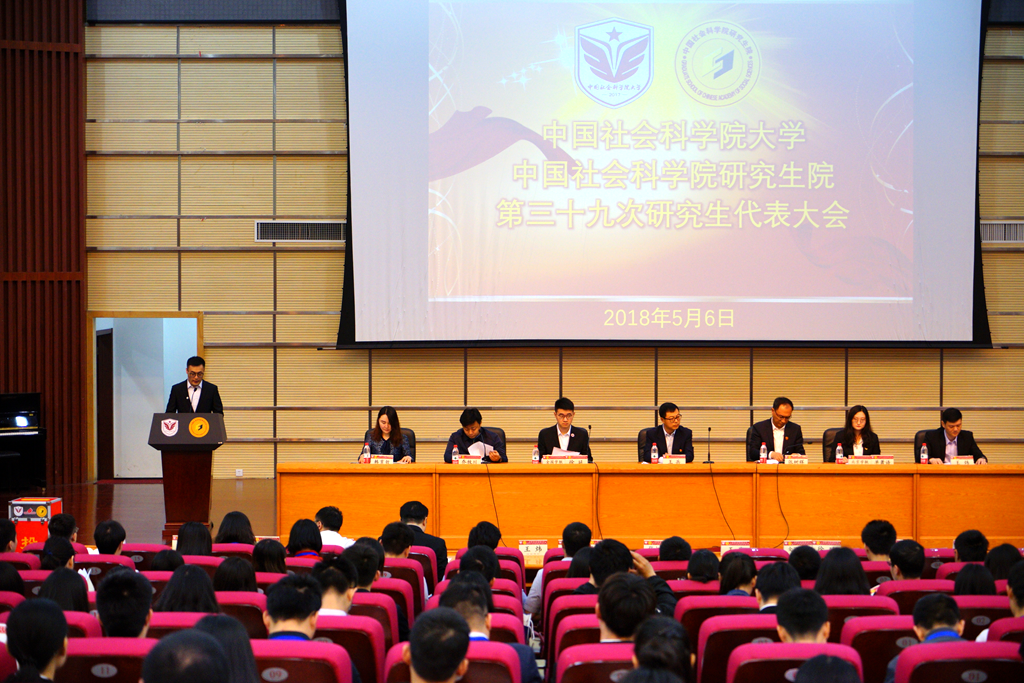2018年5月6日上午9时,中国社会科学院大学(中国社会科学院研究生院)第三十九次研究生代表大会在我校良乡校区举行,中国社会科学院大学临时党委副书记、中国社会科学院研究生院副院长王兵,中国社会科学院大学副校长、中国社会科学院研究生院副院长王兵张树辉,全国学联执行主席徐延、北京学联执行主席单萧语、中国社会科学院团委副书记、青年处副处长乔牧川、校研究生工作处负责人王炜、校团委书记韩育哲等领导老师出席会议。来自中国科学院大学、中共中央党校、中国农业大学、北京化工大学、北京语言大学等多个高校的研究生会代表与我校200多名正式代表参加了本次会议。