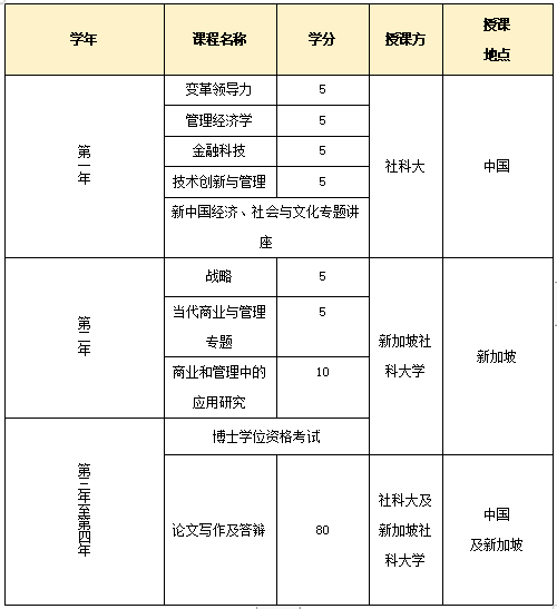 就像我们的中国社科院与新加坡社科大学工商管理博士(DBA工商管理博士)他每年的课程就是: