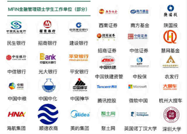 排名不分先后,logo 仅用于真实展示 MFIN 学生工作单位分布,不可转作其他商用