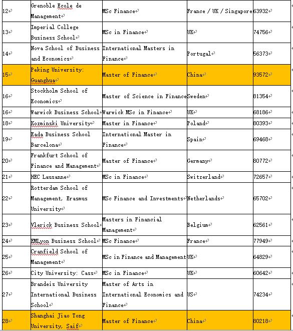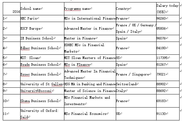 以上就是2016全球金融硕士完整排名的全部内容。
