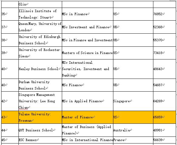2016金融硕士排名完整版 美国杜兰大学