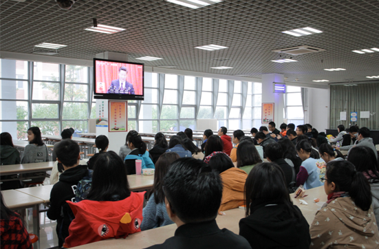 10月18日9时,中国共产党第十九次代表大会在北京人民大会堂隆重开幕,大会主题为:不忘初心,牢记使命,高举中国特色社会主义伟大旗帜,决胜全面建成小康社会,夺取新时代中国特色社会主义伟大胜利,为实现中华民族伟大复兴的中国梦不懈奋斗。我校组织本科生、研究生集中收看了党的十九大开幕式直播盛况,并仔细聆听学习了习近平总书记代表第十八届中央委员会向大会作出的题为《决胜全面建成小康社会 夺取新时代中国特色社会主义伟大胜利》的报告。