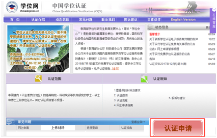 二、进入学位网点击下方认证申请,如下图: