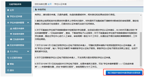 五、点击我已阅读并接受申请须知的全部条款,如下图: