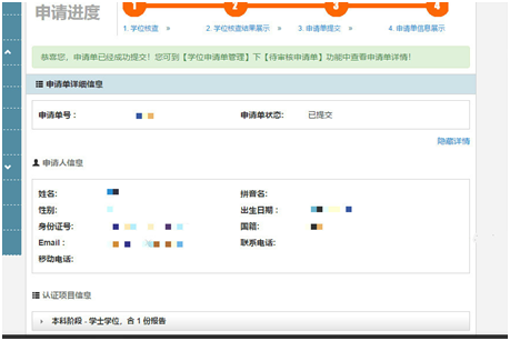 七、申请全部完成后,到学位申请清单管理中待审核清单中找到申请详情,如下图: