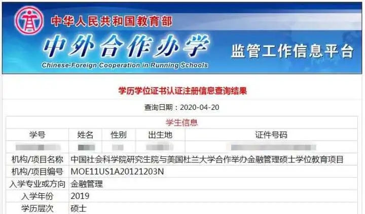 学信网和涉外监管网都能查学历吗?社科院与美国杜兰大学金融管理硕士学历在哪查?