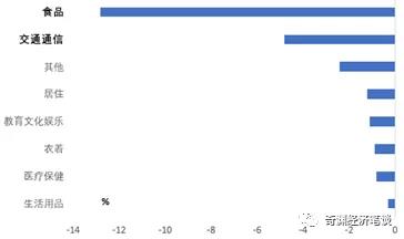 图1 食品、交通价格同比增速降幅最大:
