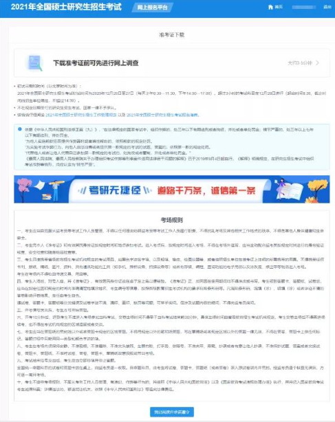 进入研招网报平台首页后,你将看到考试时间提醒、考试注意事项、考场规则等内容,这个页面上的提示要认真阅读哦!