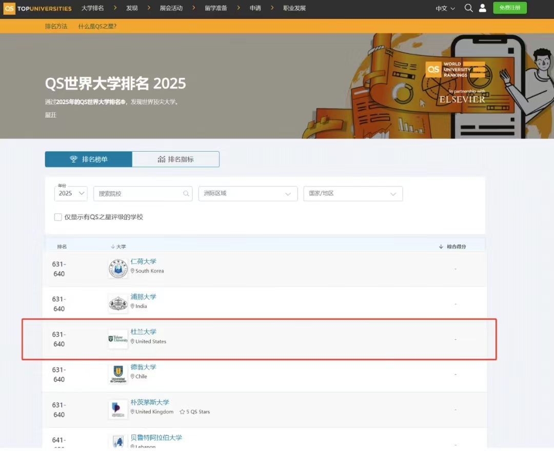 重磅!2025QS世界大学排名发布,美国杜兰大学排名如何?
