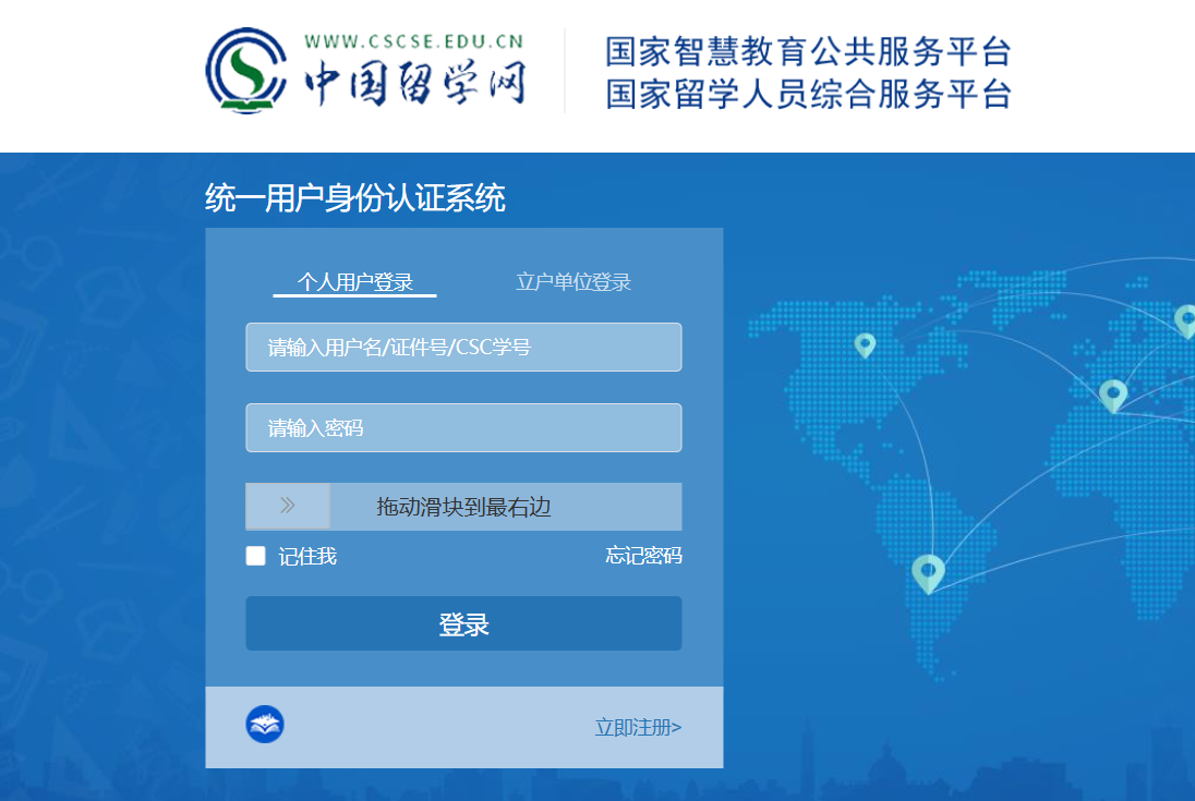登录教育部留学服务中心网上服务大厅(http://zwfw.cscse.edu.cn/),在“统一用户身份认证系统”完成实名注册。